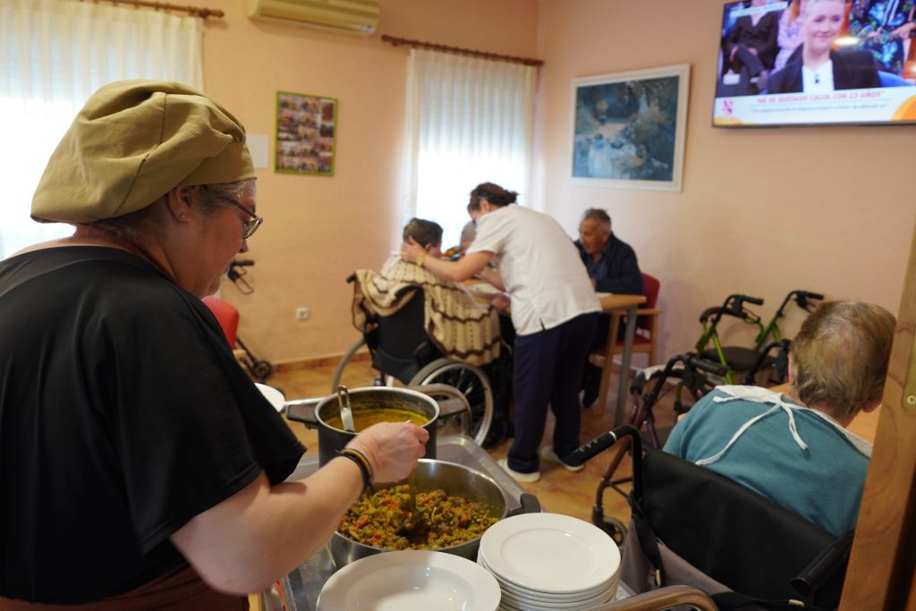 Además, la residencia proporciona estancias flexibles para residentes que necesitan cuidados temporales, como aquellos que han sufrido un ictus o una rotura de cadera. La comida es elaborada en la residencia y los menús son preparados por nutricionistas para asegurar una dieta variada y rica en nutrientes, adaptándose a las necesidades específicas de los residentes.